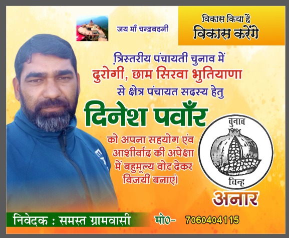 समर्थन:”अनार का निशान बनेगा विकास की पहचान, दिनेश पंवार को मिल रहा भारी समर्थन”