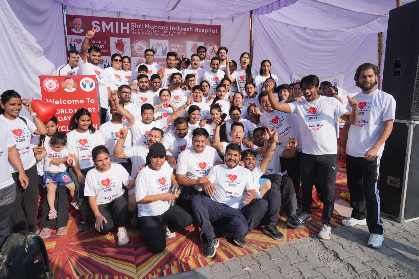 देहरादून। विश्व हृदय दिवस के अवसर पर रविवार सुबह श्री महंत इन्दिरेश अस्पताल के कार्डियोलॉजी विभाग ने साइक्लोथॉन और वॉकथॉन का आयोजन कर दिल की सेहत का संदेश दिया। “डोन्ट मिस ए बीट” थीम पर आधारित इस जागरूकता अभियान में अस्पताल के सैकड़ों डॉक्टर और हेल्थ स्टाफ शामिल हुए। हाथों में स्लोगन लेकर निकली यह रैली लोगों को हृदय रोगों से बचाव और समय पर उपचार के महत्व का संदेश देती रही।
